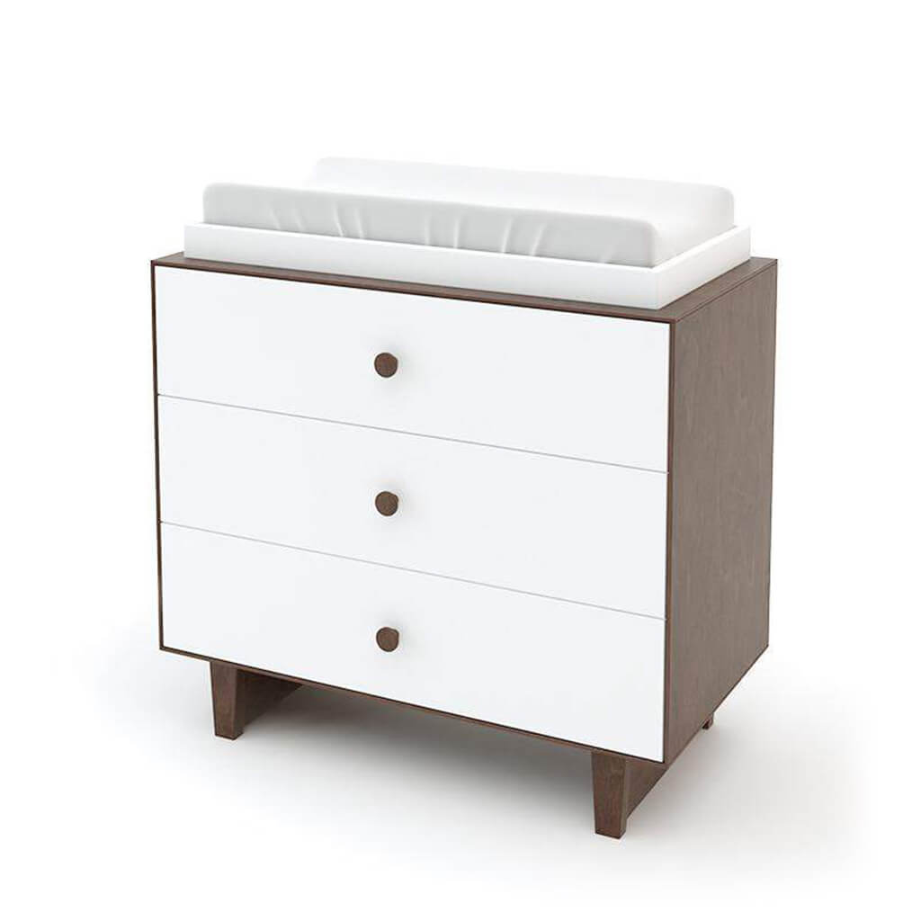 The changing Tray can be attached to the 3-drawer dressers with safety hardware. The Changing tray positions you at your baby's feet, enabling more convenient changing. It also allows for continued eye contact that can help soothe your baby while changing his/her diaper.