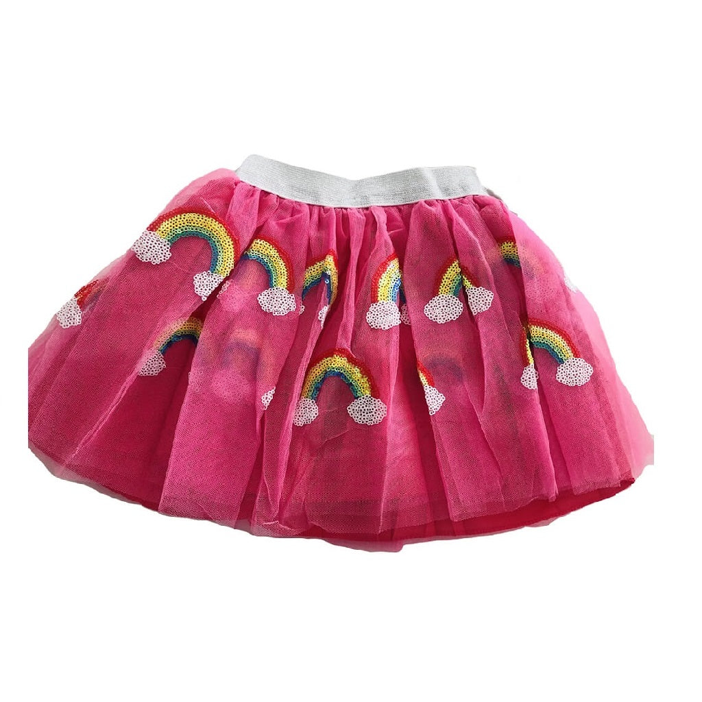- Soft Hot Pink Tulle Tutu with Sequin Rainbows.