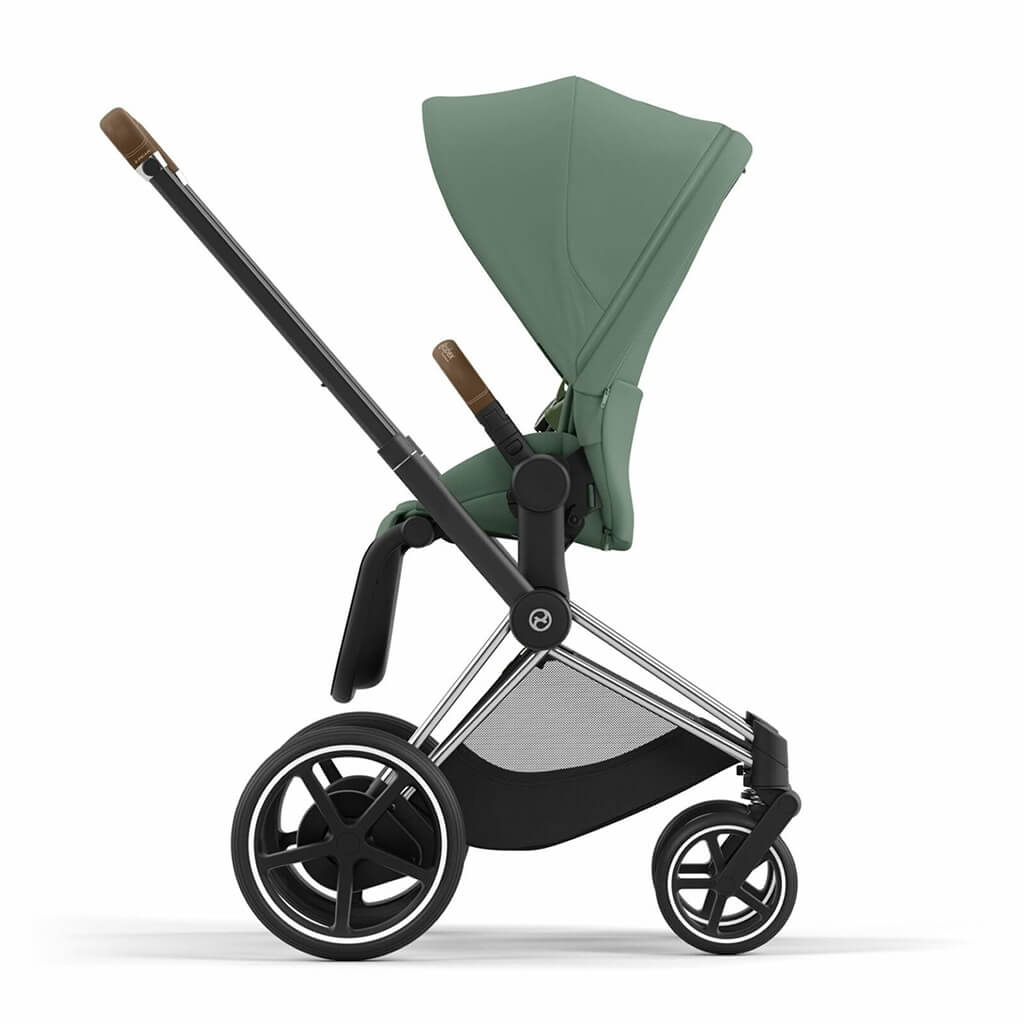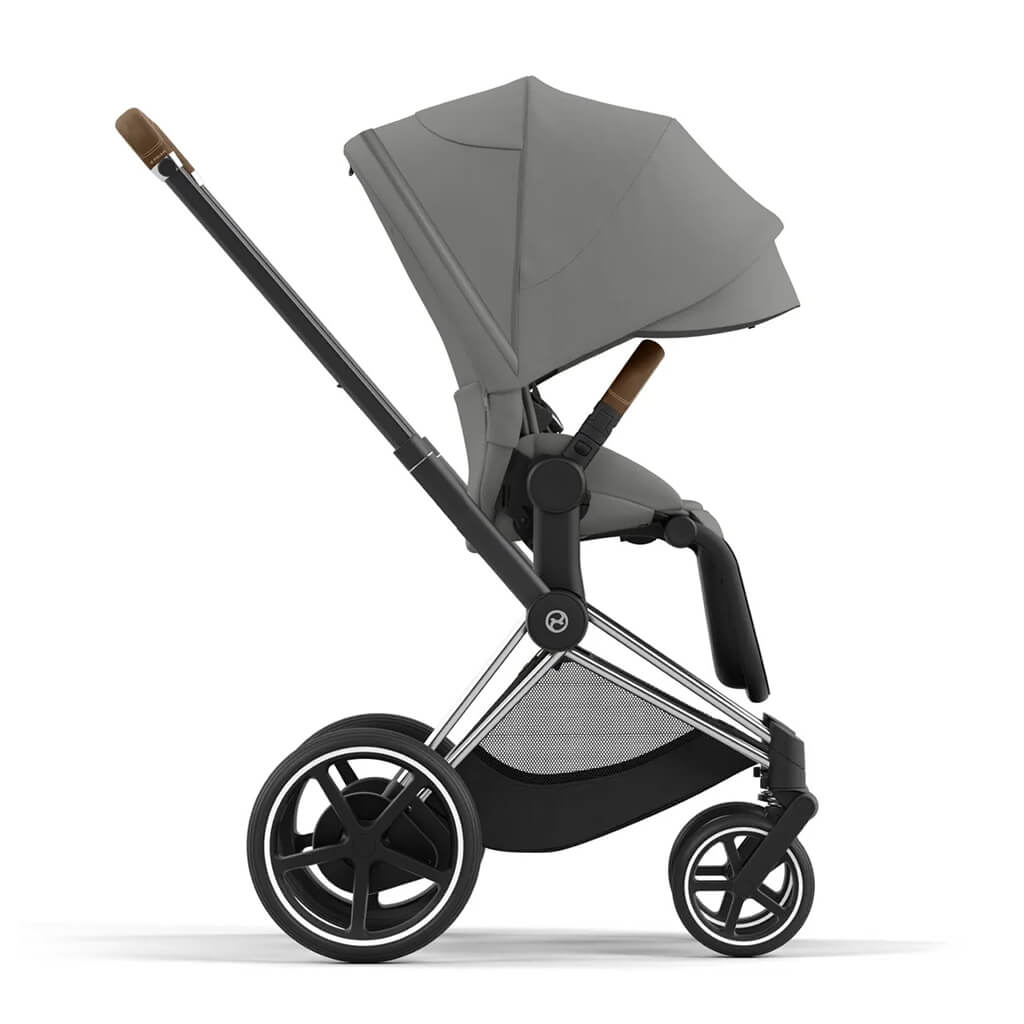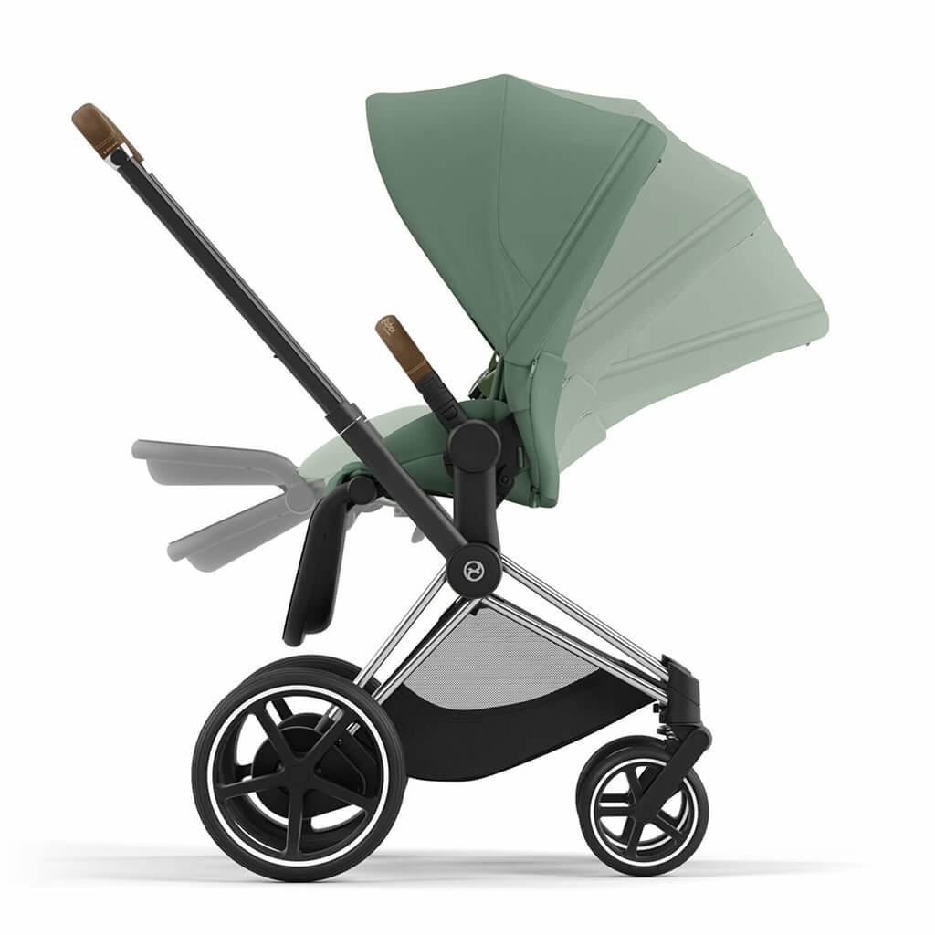 The e-PRIAM 2 stroller uniquely combines the luxurious design and functionality of the PRIAM stroller, with the electronic power of smart technology. The unique uphill and downhill support make ascents and descents as effortless as flat terrain by smartly adapting to the respective surface. Whether cobblestones, sand, snow or gravel, the e-PRIAM is a breeze to maneuver. The unique one-pull harness helps you secure your child in the stroller in seconds, with just one hand. One frame enables three different modes of use: from birth with the PRIAM 4/e-PRIAM 2 Lux carry cot or any CYBEX infant car seat (both sold separately), and later with the seat unit as a luxurious parent-facing or forward-facing stroller.
