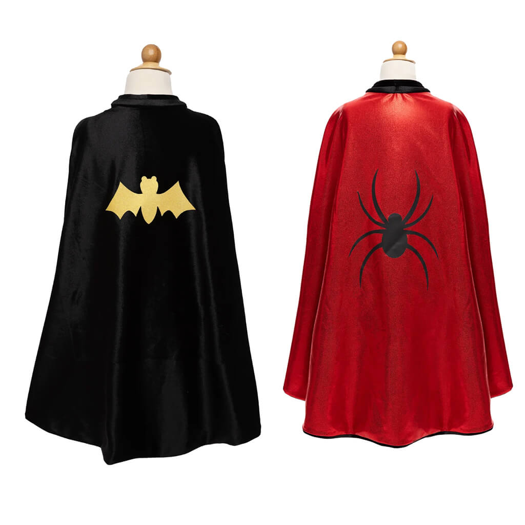 Introducing the Kids Reversible Spider Bat Cape, a captivating cape proudly made in Canada! On one side, your little hero can don the iconic spider emblem, inspiring a sense of agility, cunning, and spider-like abilities. Flip it over, and they'll unveil the mesmerizing bat symbol, ready to soar through the skies with unparalleled strength and nocturnal prowess. The vibrant colors and intricate stitching bring these legendary characters to life, making every adventure more thrilling.