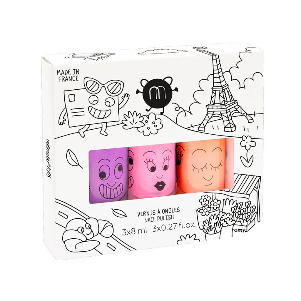 The party set of 3 are water-based nail polishes in pearly colors.