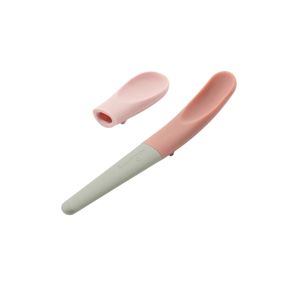 This innovative set contains everything needed to support your Mini from their first tastes of soft solids to exploring self-feeding. Two carefully shaped and sized silicone heads help you feed your little one and smoothly transition from first spoon fed purees and into soft solids. The Pre spoon is carefully shaped and sized for you to feed your little one while introducing purees and other soft solids. To begin self-feeding and larger bites, switch to the Pro spoon head designed to help kiddos safely explore and practice feeding on their own.