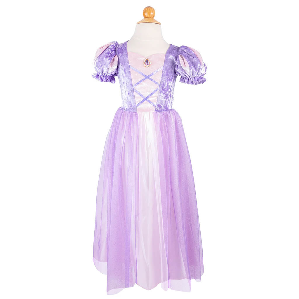 The full-length skirt is made with layers of soft tulle, adding volume and a dreamy, twirling effect that’s perfect for any princess. Whether it’s for a costume party, a special occasion, or everyday adventures, this dress is sure to make your little one feel like they’ve stepped right out of a magical tower!