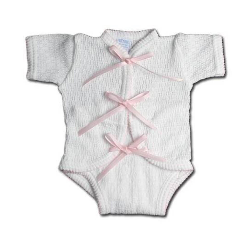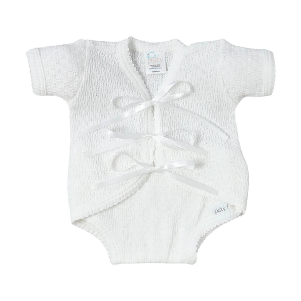 Solid white signature, 50/50 blend, Paty knit accented in colored picot trim.